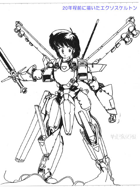 素亞もそっくりなのを20年ほど前に女性キャラに着せて描いてました。パワードスーツをより軽量化した感じなのですがなんでこの絵は剣持ってるんでしょうねえ?